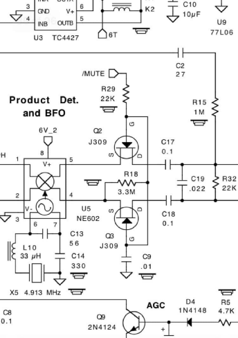 受信セクションへのミュート信号に適用されるRC回路上のコンデンサC37の値が高すぎる。回路図では0.01μFと記載されているが、実測値は0.1μFであった。これによりスイッチングに余分な長い時定数が作用する。C37を0.01μFのコンデンサに交換したところ、T/R切り替え時間はほぼQSKレベルまで短縮された。